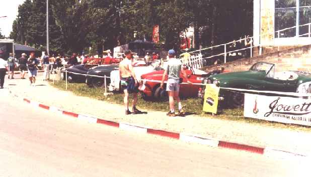 On Friday June 16th we were joined at Le Mans by the third group, the campers. One of the camping group - Mike Allfrey - has this to say about the crossing from Portsmouth "The huge concrete paved assembly apron was a smorgasbord of British sports cars. There were about 20 vintage Bentleys celebrating their 70th anniversary of their last win at Le Mans. There was a host of Morgans, Jaguars, Healeys, MGs, all types of Lotuses and their derivatives, and TVRs were in abundance. There were four other Jupiters besides mine. It was a very social evening as we waited for the 22:15hrs sailing time. Our P&O ferry had a very special load this trip!!".